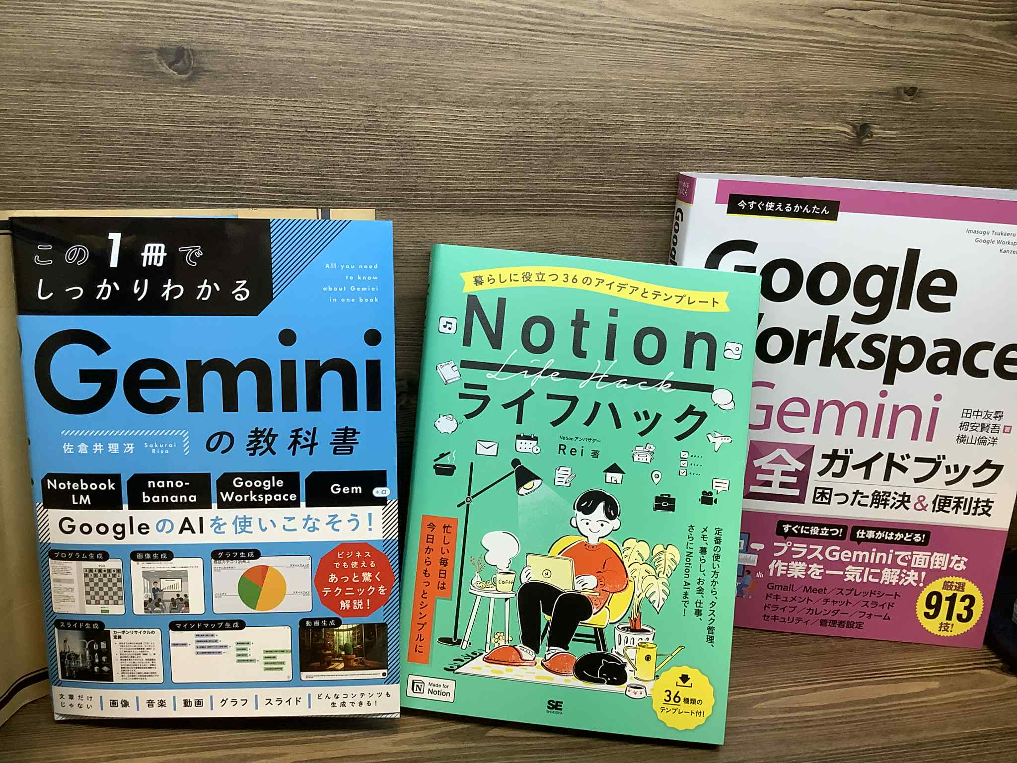 そういうこともあり、去年後半あたりからNotionやGoogle Workspace、Geminiの書籍を買いました。ひとまずはこの辺りの書籍を読み始めるようにします。